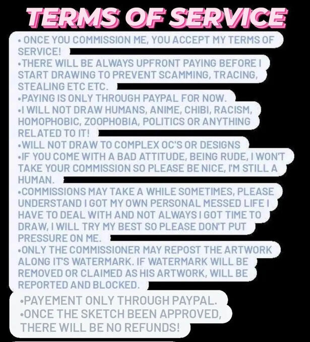 MAKE SURE YOU'VE READ THE TOS BEFORE COMMISSIONING!!!
